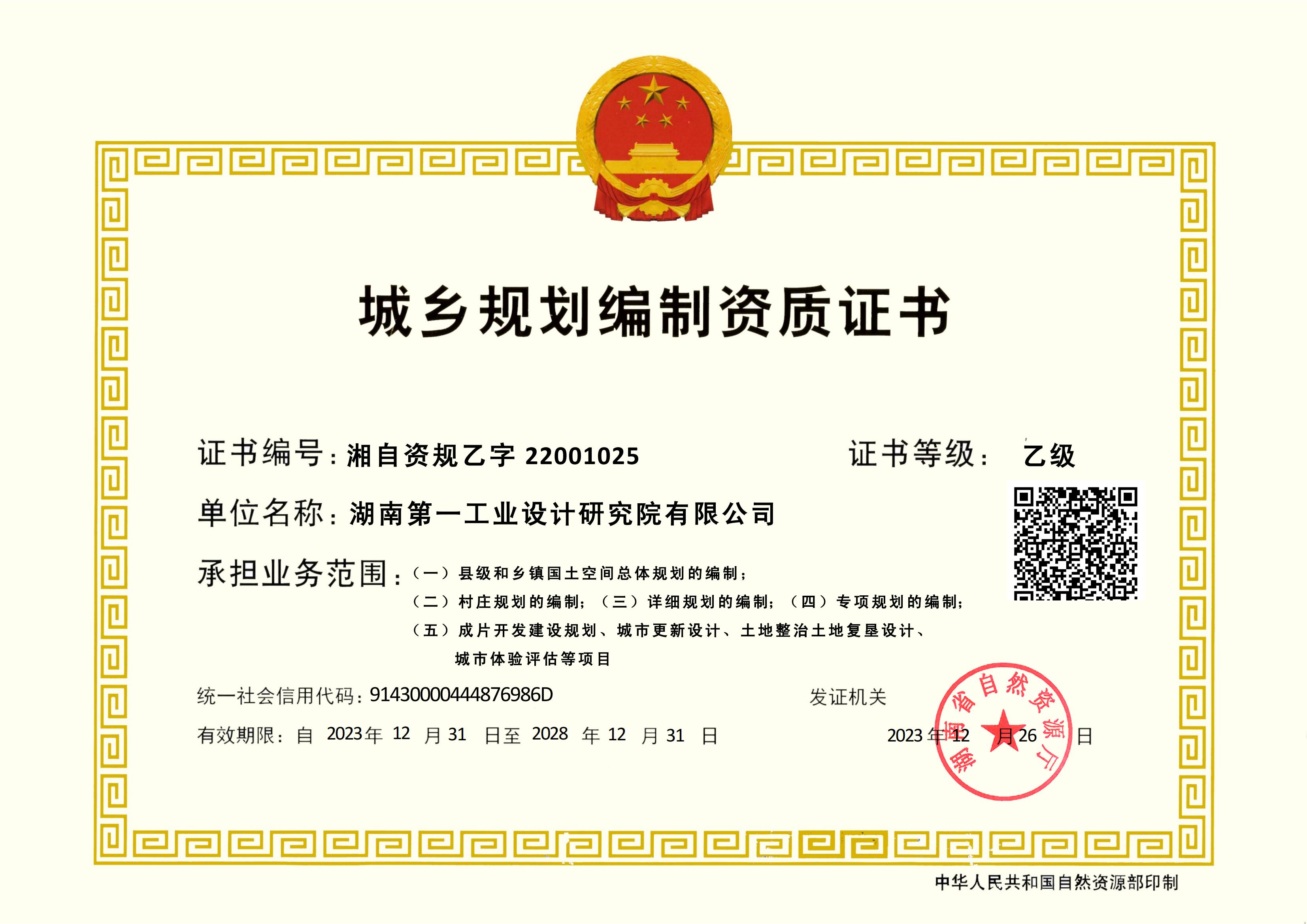 城鄉(xiāng)規(guī)劃編制資質(zhì)證書
